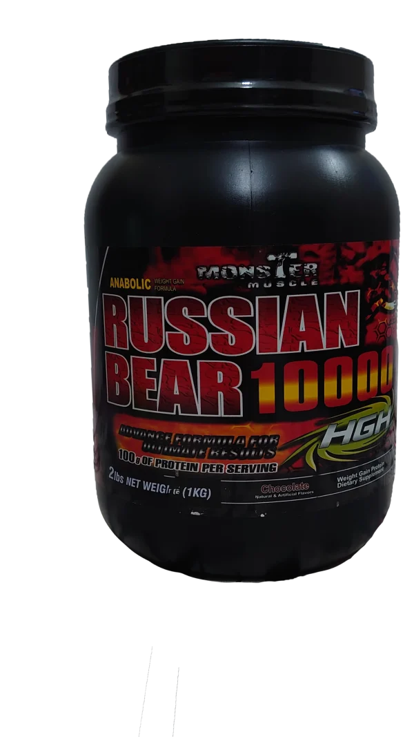 Russian Bear 10000 is the ultimate anabolic weight gain formula designed for serious muscle growth. Packed with 100g of protein per serving, this powerful supplement helps fuel your workouts and accelerate recovery. Perfect for athletes and bodybuilders looking to bulk up and maximize performance.